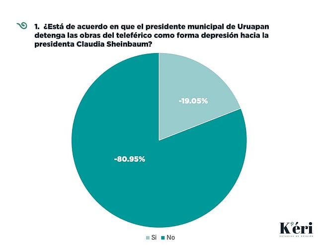 El 80.95% de la población de Uruapan no está de acuerdo con el alcalde Carlos Manzo sobre detener la construcción del teleférico como medida de presión para exigir más seguridad a la presidenta Claudia Sheinbaum Pardo.