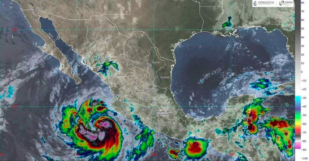 De acuerdo con el Servicio Meteorológico Nacional (SMN), el fenómeno se localiza al suroeste de Jalisco y al sur de la península de Baja California, donde su amplia circulación está provocando condiciones de riesgo por inundaciones, deslaves y afectaciones costeras.