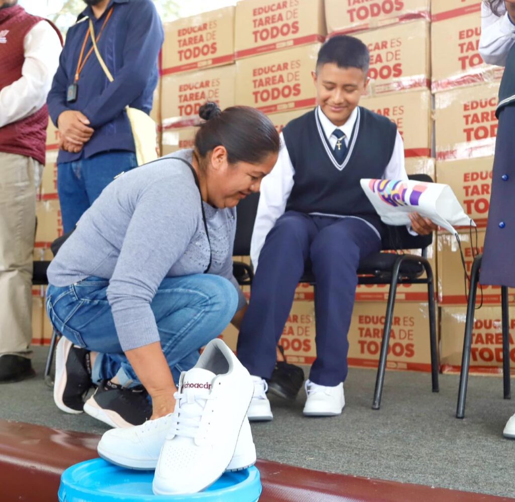 En Jarácuaro, municipio de Erongarícuaro, se entregaron más de 300 cubetas de pintura para la mejora y dignificación de los planteles, además de casi 4 mil pares de tenis, cubriendo así la totalidad de los estudiantes de secundaria de las comunidades participantes.
